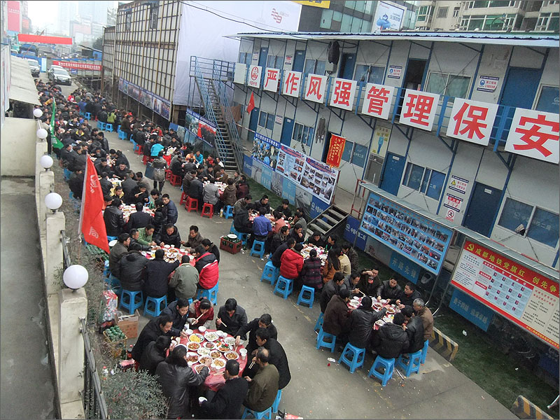 中铁城投第二届蓉城杯书画摄影比赛作品选:《工地坝坝宴》 朝晖(中铁二局二公司成都地铁7号线4标项目部 )